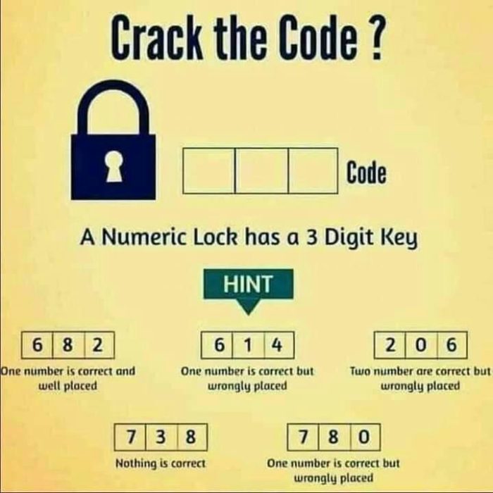 We get the first idea about the first number from hint 4. It makes clear that 7, 3 & 8 are not a part of the key. Now, look at the 5th hint. It says ‘one number is correct but … Read More
